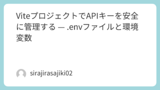 ViteプロジェクトでAPIキーを安全に管理する方法を解説。.envファイルの作り方、VITE_プレフィックスが必要な理由、import.meta.envでの読み取り方、.gitignoreへの追加まで手順を紹介します。