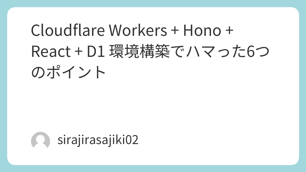 最近、個人開発で Cloudflare Workers + Hono + React + D1 の構成を試してみました。シンプルで強力な構成なのですが、実際に環境構築してみると公式ドキュメントだけでは見えにくい落とし穴がいくつもありました。
