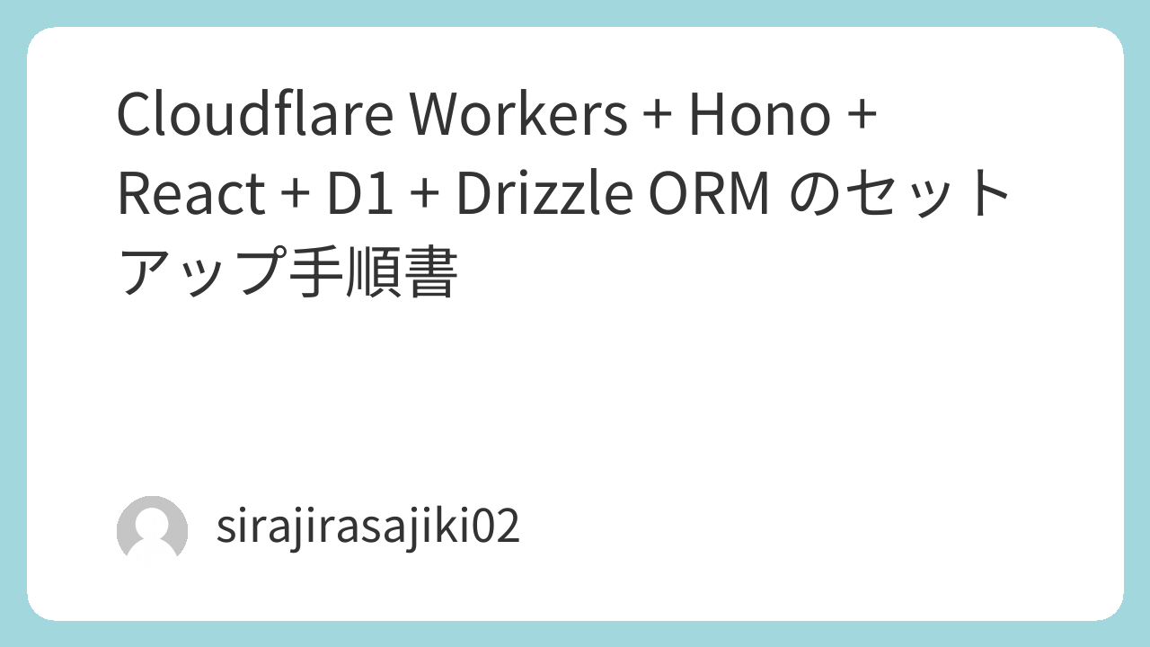 前回の記事で Cloudflare Workers + Hono + React + D1 の環境構築でハマったポイントを紹介しました。今回はその姉妹記事として、上から順にコピペすれば同じ構成が再現できる手順書をまとめます。