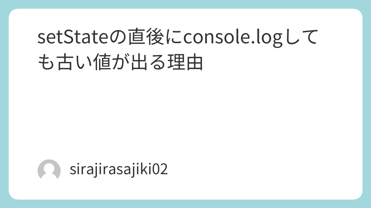 今回は、`setState` の直後に `console.log` しても古い値が出る理由についてまとめます。